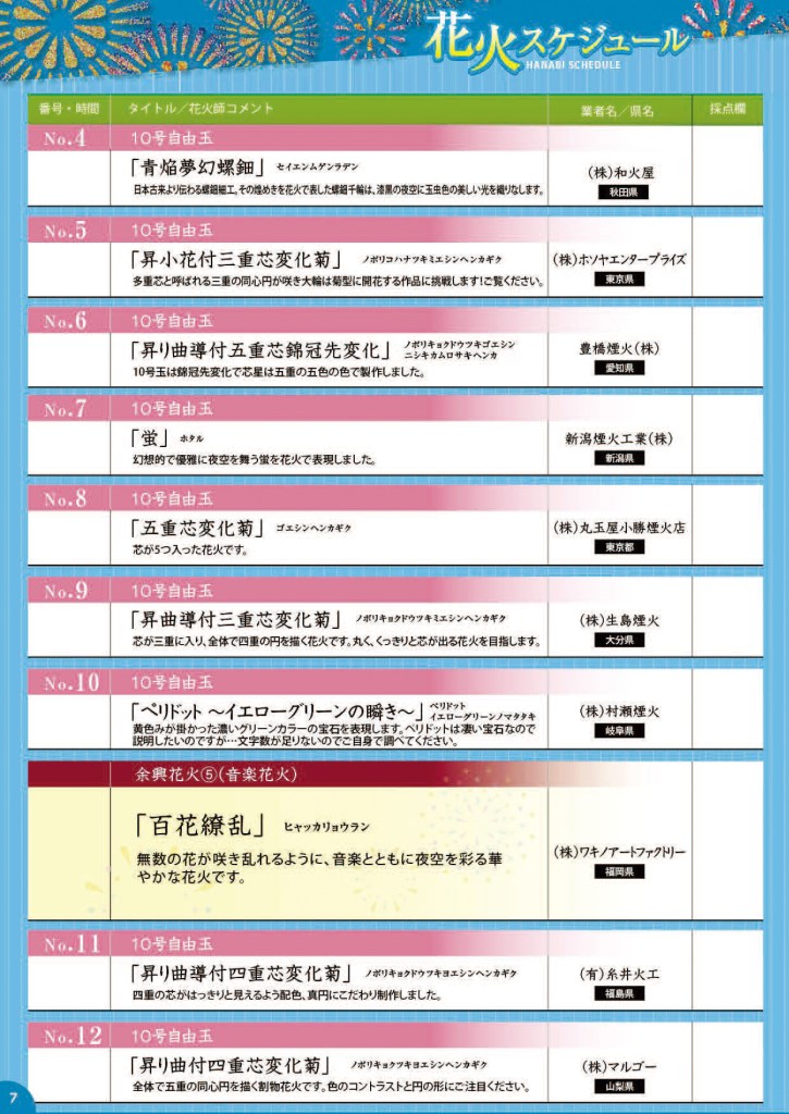 | 後援:(公社)日本煙火協会、蒲郡市、蒲郡商工会議所 |